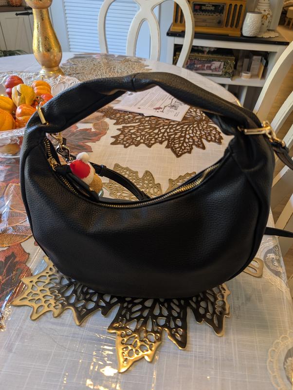 I ordered this on clearance online because I like the look of the moon shaped bags, but it wasn't a brand I was familiar with so I wasn't sure what to expect but wow! Its absolutely stunning! It looks expensive. The material isn't leather but it feels buttery soft and luxurious. The zipper is smooth and the hardware doesn't feel super light and tacky. All around a great purchase, a real bargain even at retail so I'd grab one while they're still available.