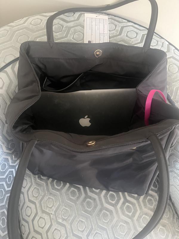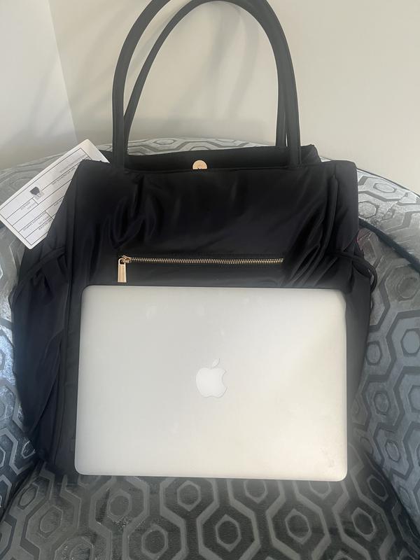 I’m absolutely loving this nylon bag! The large size is perfect — roomy enough to comfortably fit my laptop, charger, and all my daily essentials without feeling bulky. The outside gold-tone zip pocket is great for quick-grab items, and the magnetic snap closure keeps everything secure while still being easy to open. One of my favorite features is the side drawstrings on both sides. They let you tighten the bag for a chic hourglass shape, giving it a stylish touch you don’t usually get with nylon totes. The gold-tone hardware, back zip pocket, and the well-organized interior — complete with card pockets and a zip compartment — make it both practical and polished. It’s definitely laptop-compatible, durable, and easy to clean with just a spot wash. If you need a bag that’s functional, fashionable, and perfect for everyday use, this one is a winner.