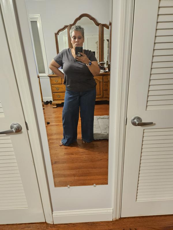 These wide-Leg jeans are very nice and comfy. The fit is superb. Grabs all of my curves just right. Thanks