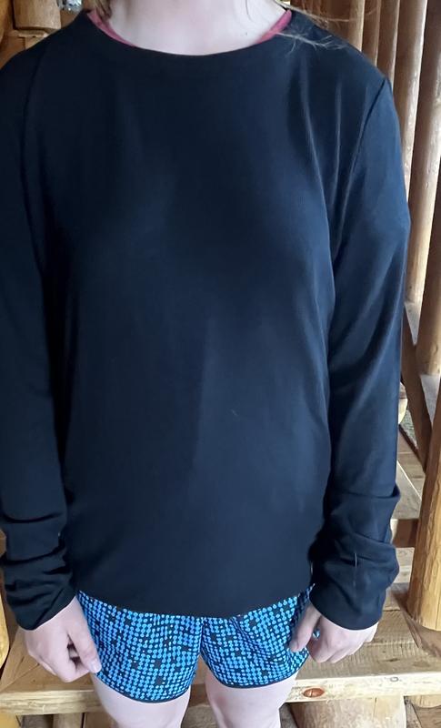 It wasn't as bright white as I thought it would be. It was more like a long john tee instead of a feminine tee.