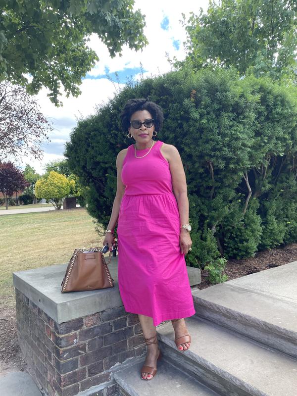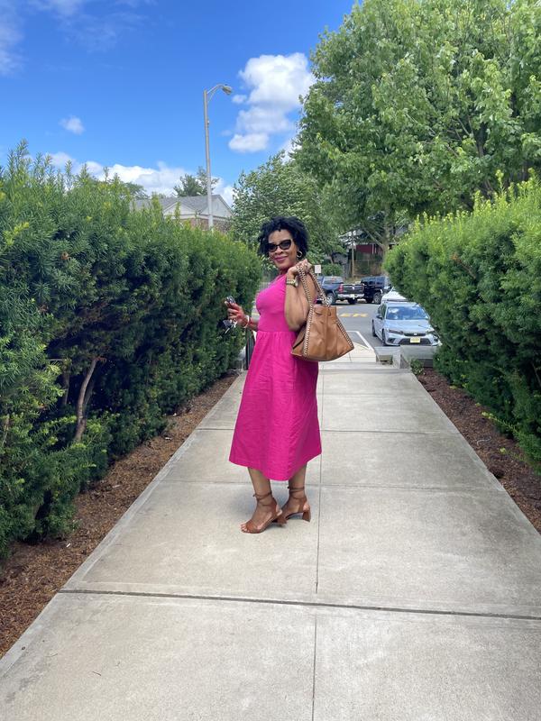 Received so many compliments in the Cobalt color. It is super flattering, good quality and is super breezy for the summer. I’m 5’0 so it hits right above my ankles (not at an awkward length) and wears as a cute maxi so I didn’t have to tailor.