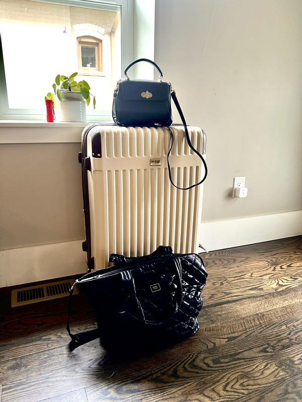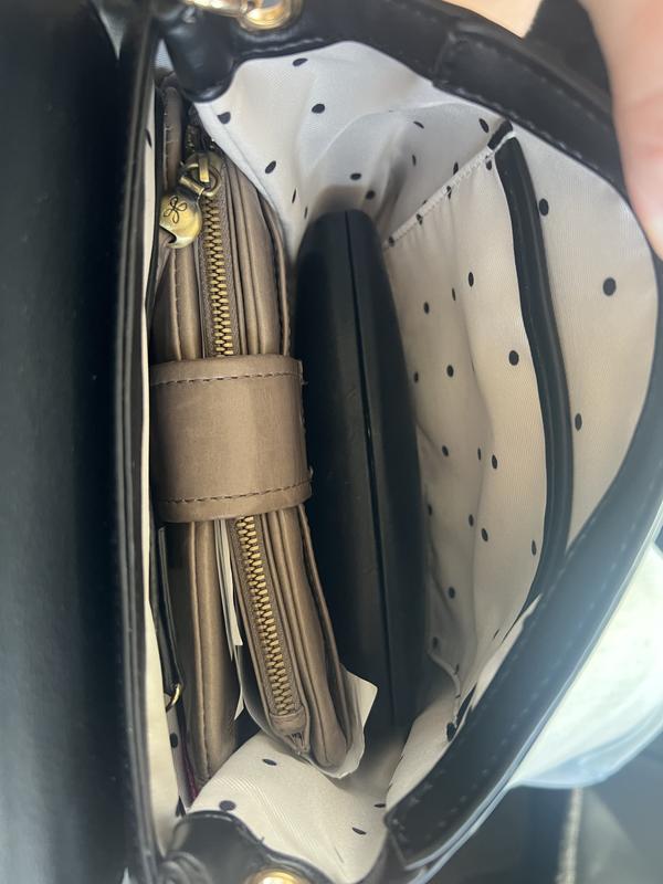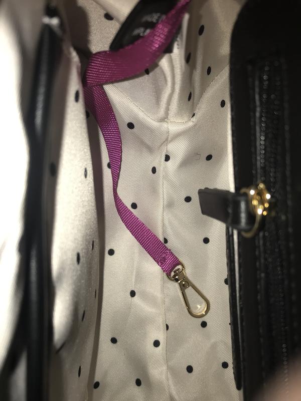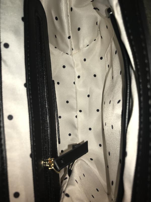 I LOVE this purse! It’s so cute and fits more stuff than you think. The outside is very soft and buttery and I love the polka dots on the inside. Great brand!! I also bought their Holmme small straw crossbody. Also cute!! I’m 60 and love this brand. The color in first photo is off. It’s a very pretty light baby blue.