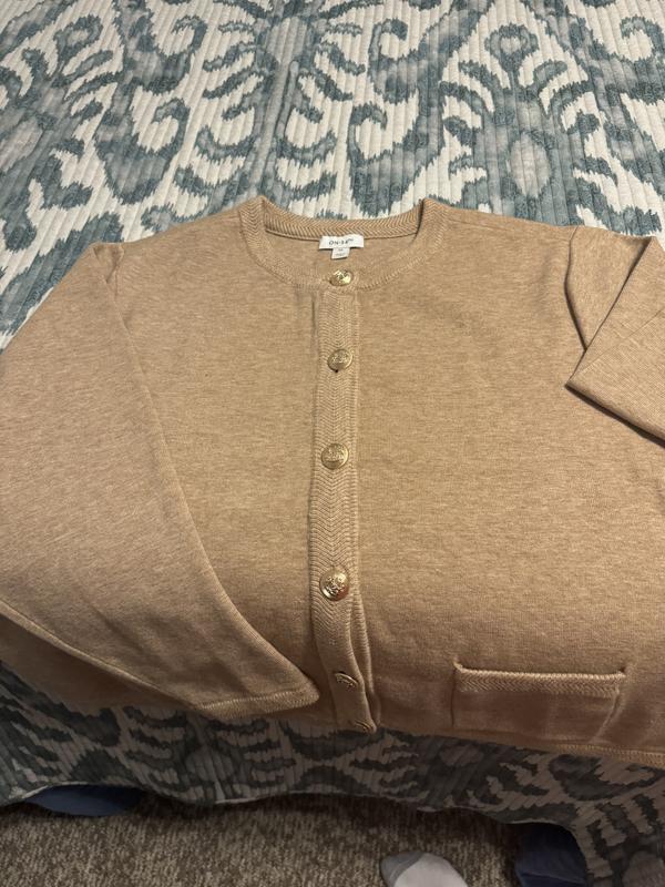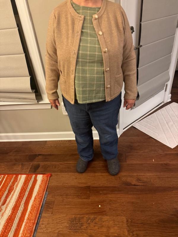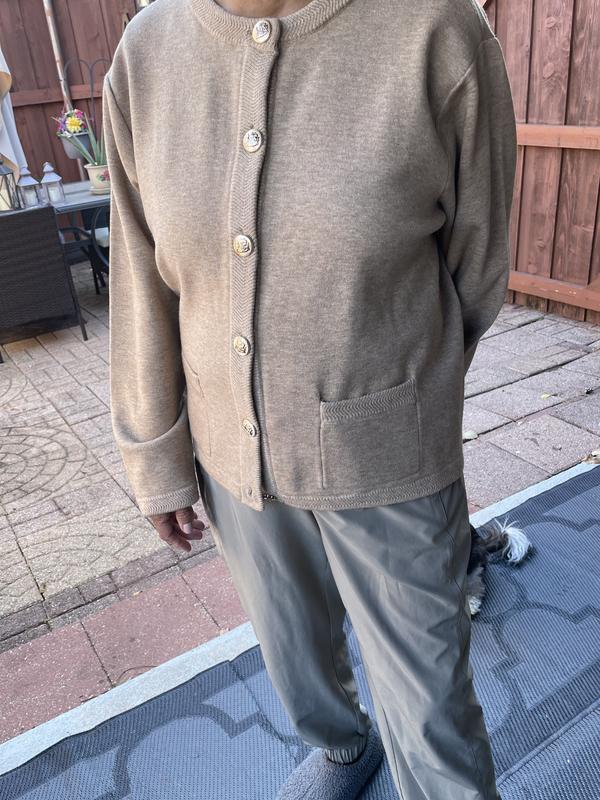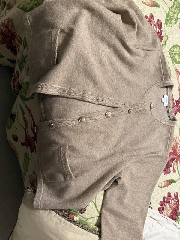 Very beautiful sweater. Has a classic Chanel vibe to it. Would buy more colors if they have them.