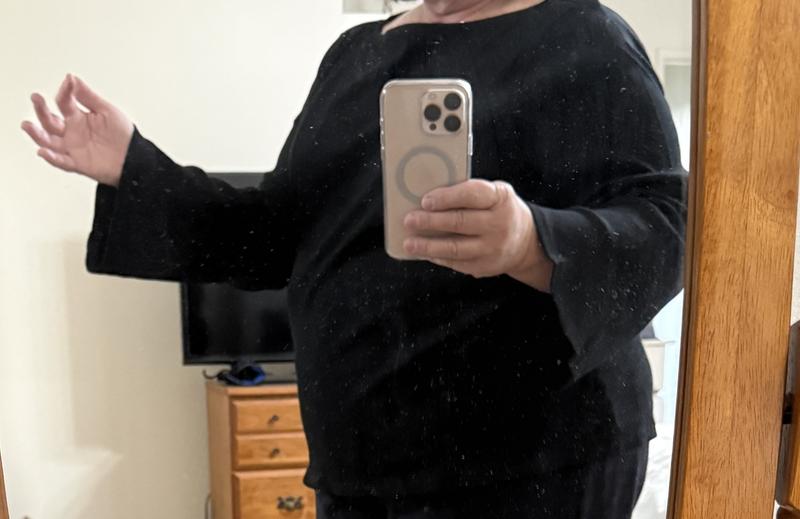 Love this little black top … just wish it was longer in length it’s sort of short but still a nice purchase for the price..