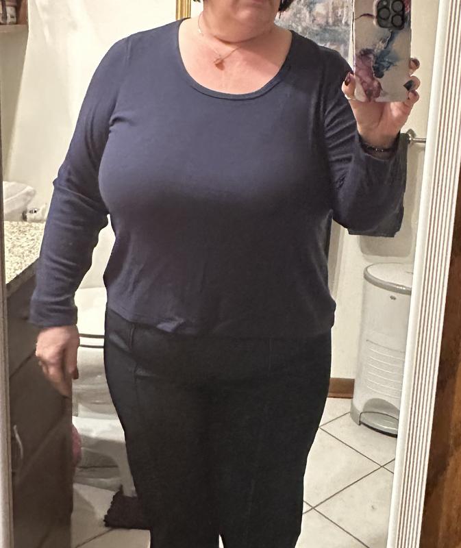 I had to return this top. I hoped the fabric it was more of a t-shirt cotton, but it was thin & clingy.