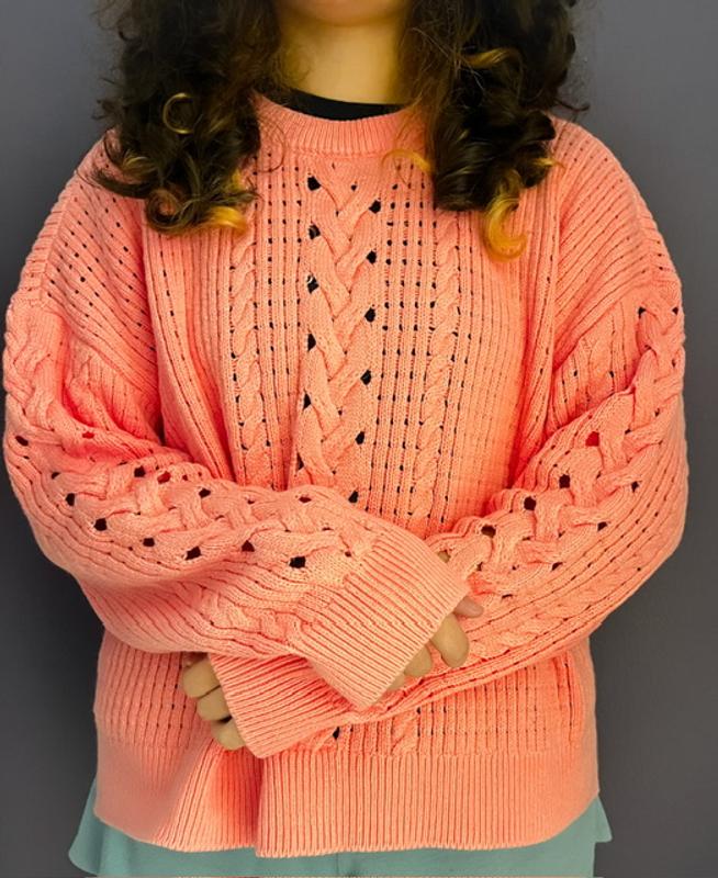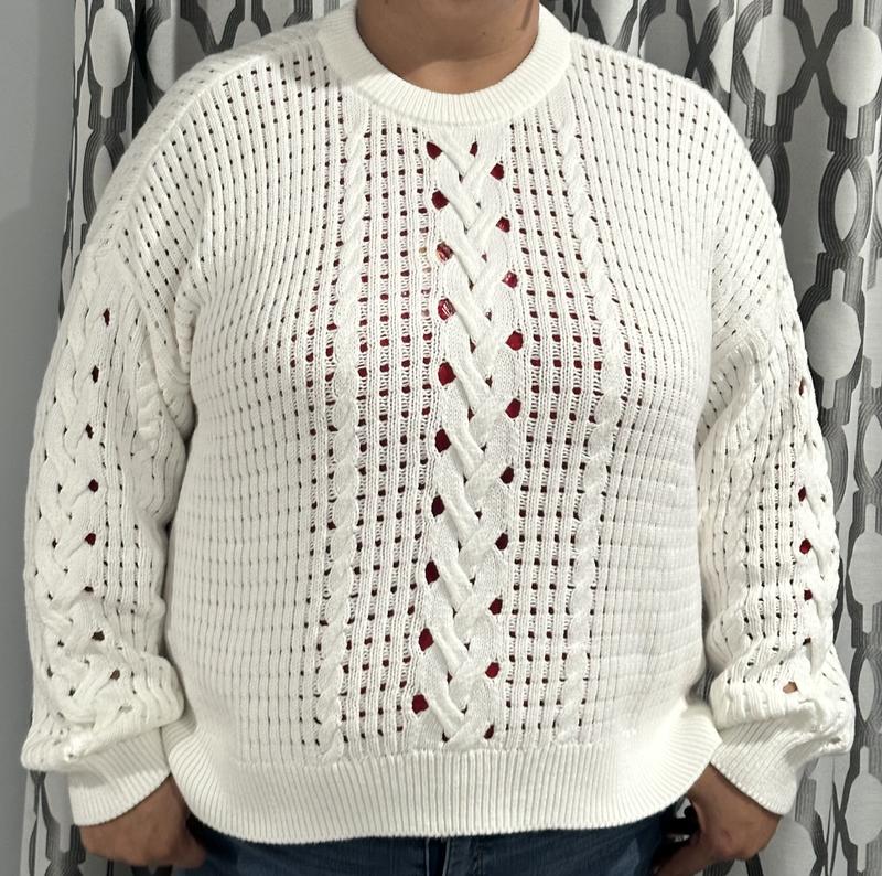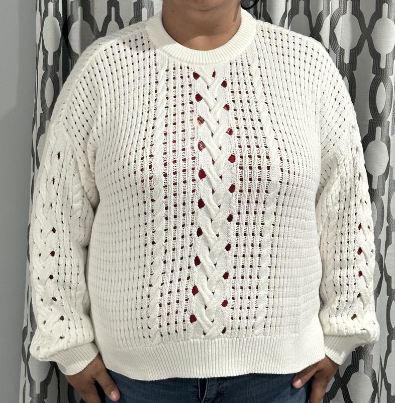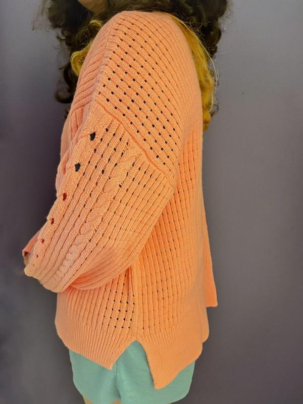Love this sweater!! Bought 2 colors for myself and 2 for my daughter. Great for spring , autumn or summer evening s. Patten and material are great. Adding a contrasting tank top underneath makes it even more versatile. We received many complaints. I’m in my late 60’s and my daughter 40., so it gets complicated for any age group.