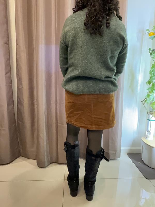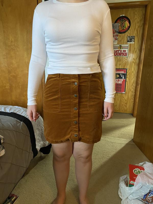 I recently received this corduroy skirt, and while the quality is fantastic—thick, durable fabric that feels perfect for cooler weather—it’s a bit too long for my taste. I’m on the shorter side, and the length feels awkward, but I can see this being perfect for anyone 5’5 or taller. It has a classic look and is very versatile, just be mindful of the length if you’re petite. Overall, an 8/10!