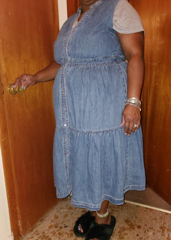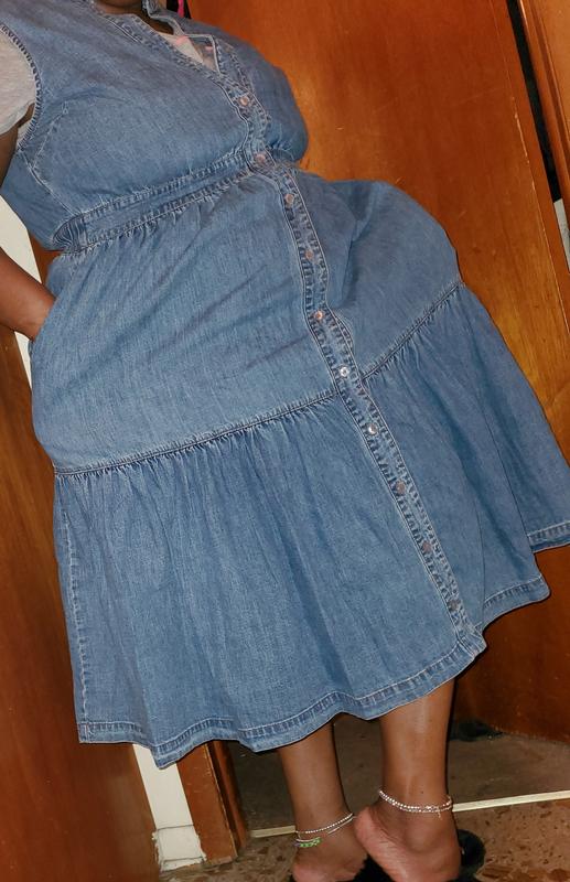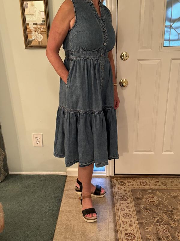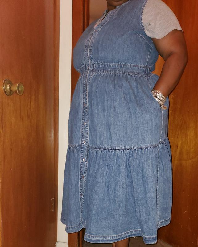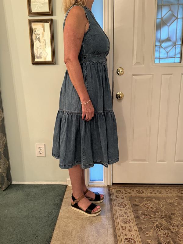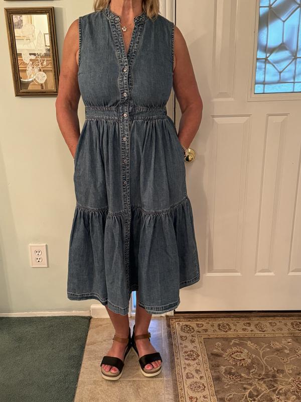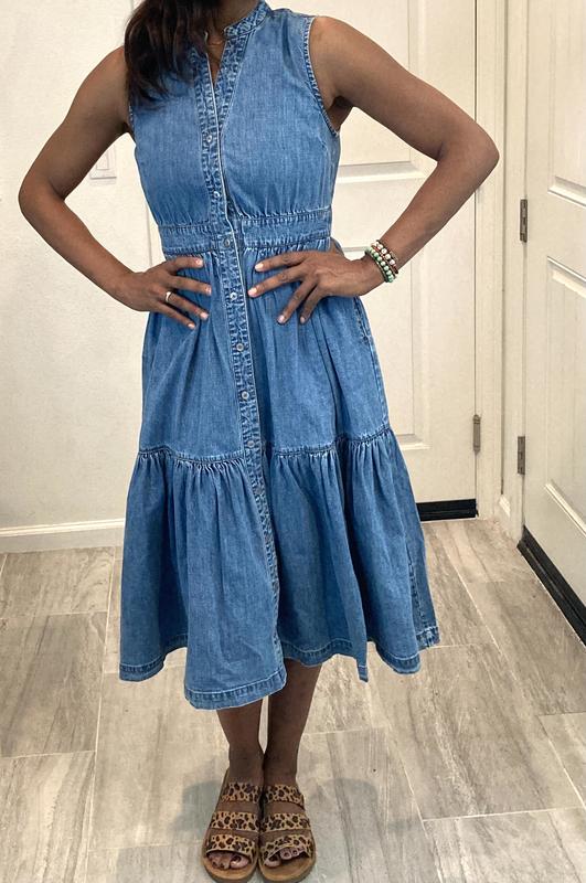 Love this tier denim dress. Was looking for denim skirt, but found this dress on sale. I love denim and so glad I saw this on sale.
