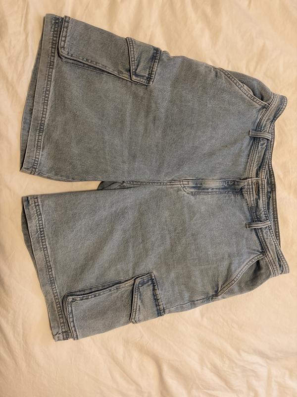 This is a very nice cargo short that fits perfectly. It is made with real jeans material and it has good size pockets that fit my needs. I love it!