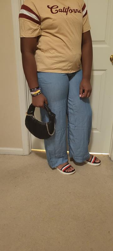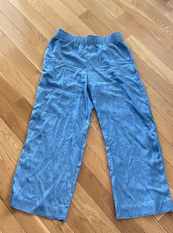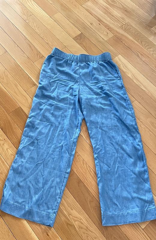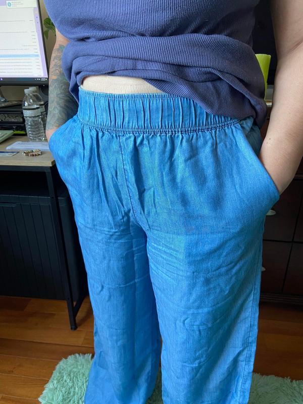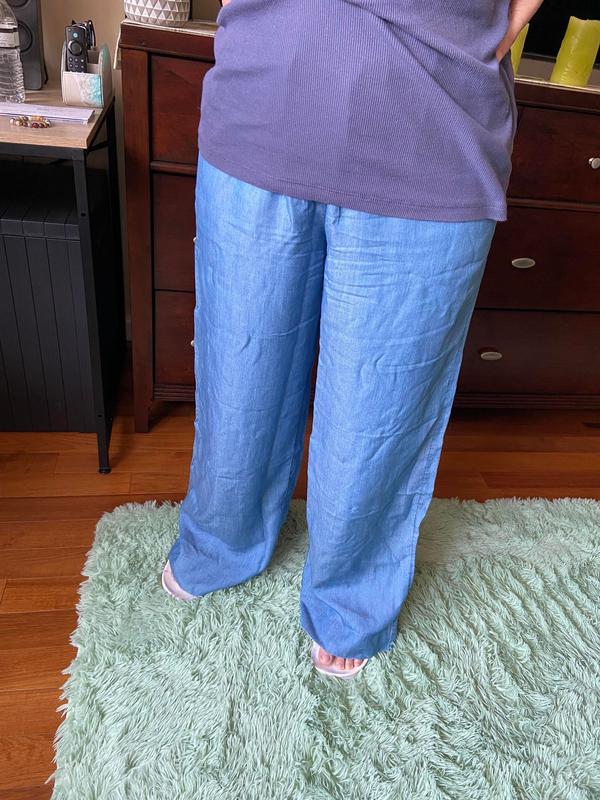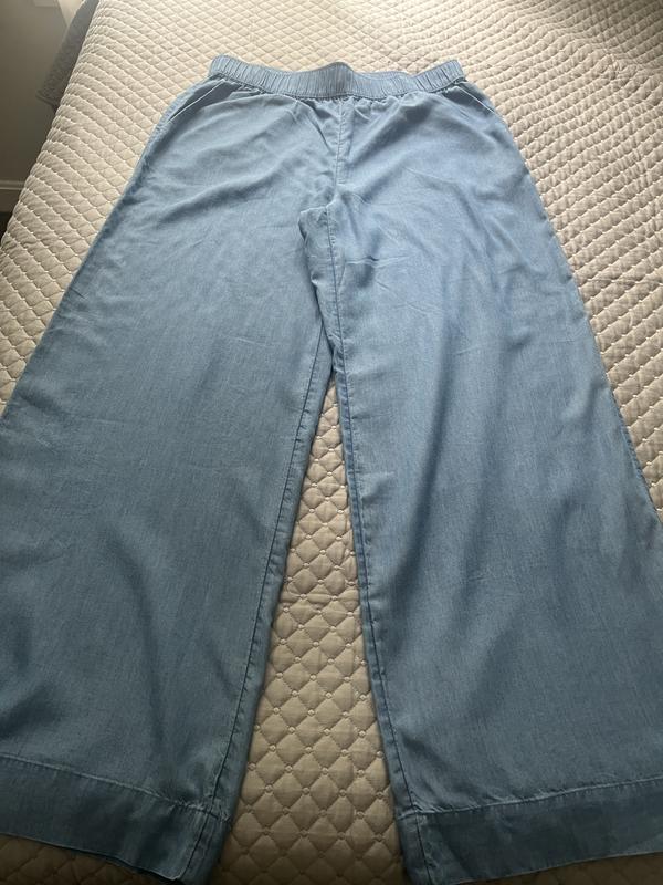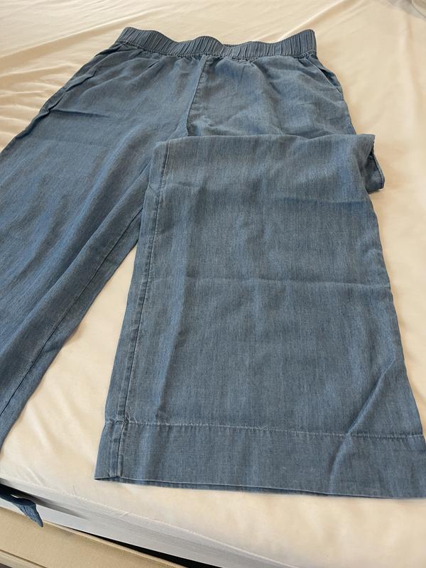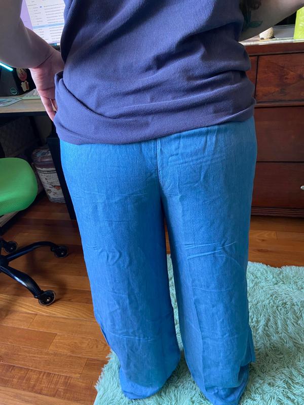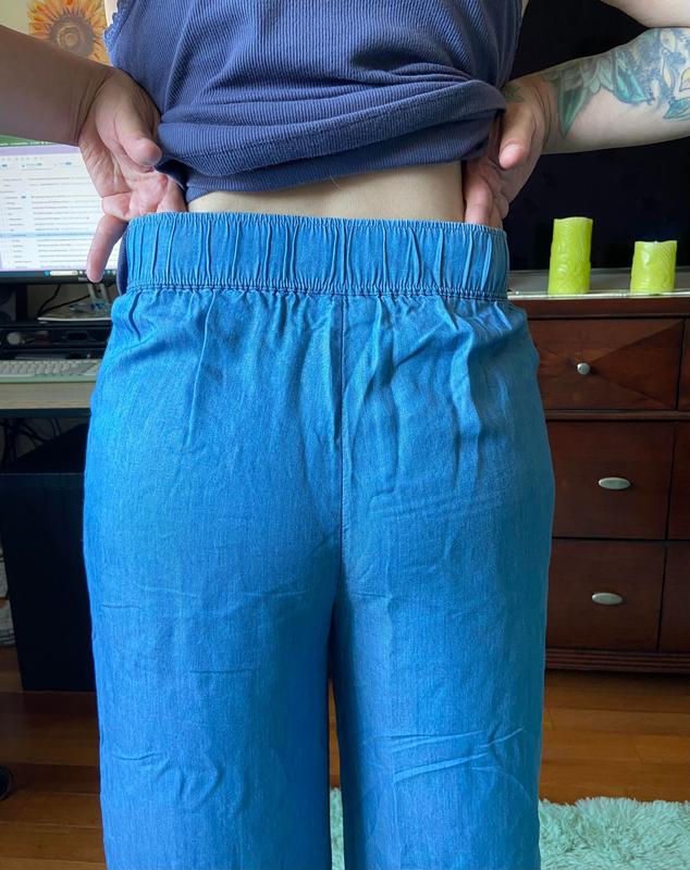 This pants are ultra soft, very comfortable and perfect for summer. They are high waisted and wide leg, easy to style and affordable. These pants look like jeans but they are not. I’m 5.2 and 145 lbs I ordered size M, it’s a little bit loose but I like the way it fits.