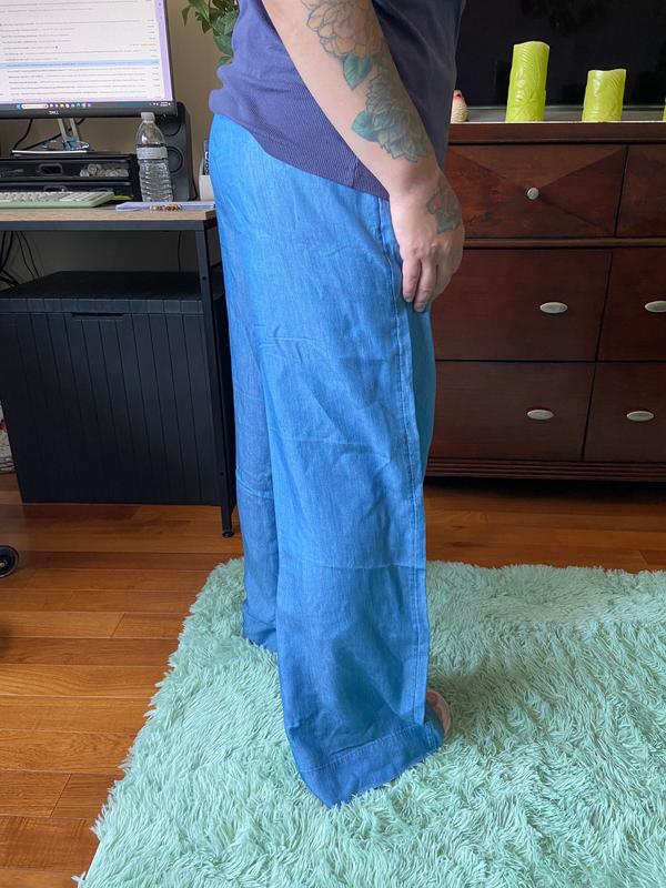 I love the color and how soft and flows these wide leg pants are but for me they run big and because the waist is too big they are even longer on me. I am 5 feet 4 and they’re super long. If they fit properly I think it would be a great addition to my wardrobe! A petite size would have worked better.