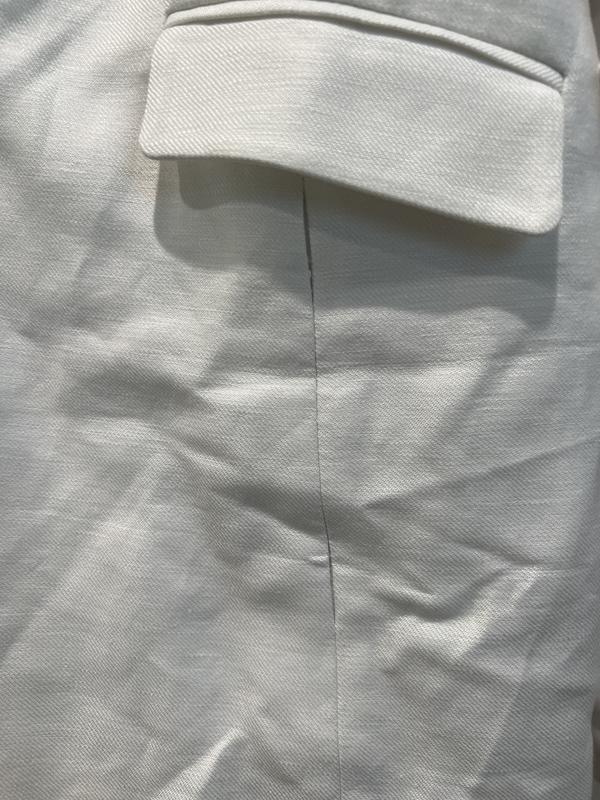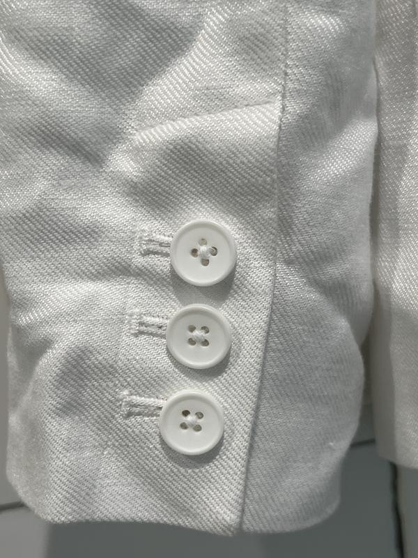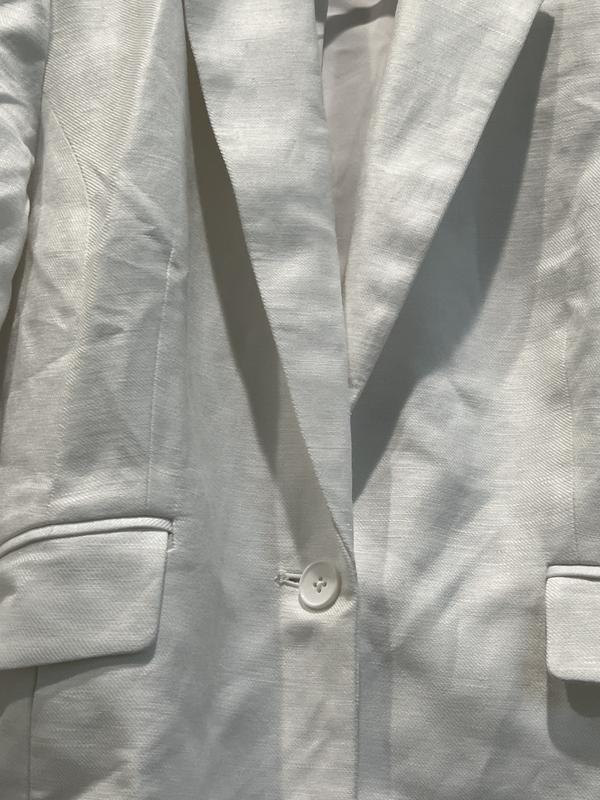 This blazer is absolutely gorgeous! It is a crisp white and beautifully tailored. The fabric weight is light but not flimsy. I wish it came in more colors. I can hardly wait to wear it!