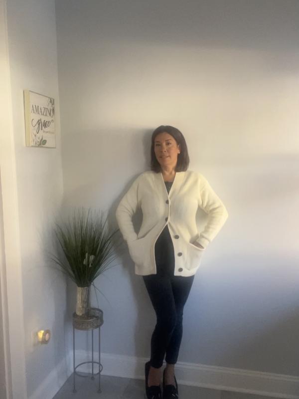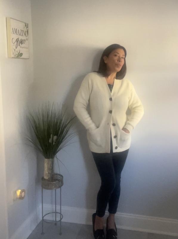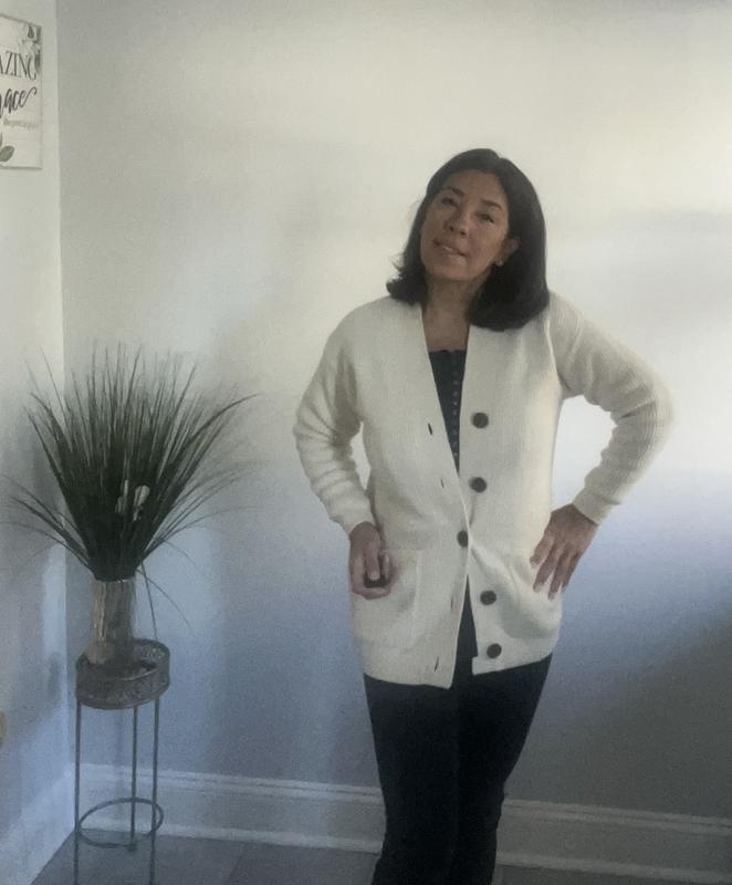 Love this sweater. Love the button down and it’s cozy soft. Would buy again in a different color.