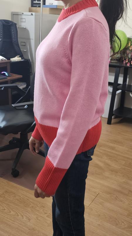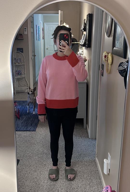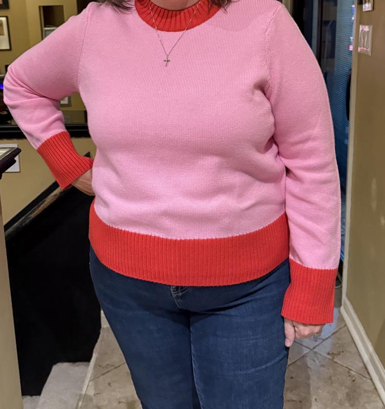 I honestly didn’t expect to love this sweater as much as I do, but wow it’s become one of my favorites this season. The On 34th Women’s Long Sleeve Crewneck Sweater has that perfect balance between comfy and stylish. The knit is soft enough to wear all day without feeling scratchy or heavy, and the fit is relaxed but still flattering not boxy at all. What really makes it stand out is the color-block design. The pink and red combo looks bold in the best way, fun, playful, and easy to dress up or down. I have worn it with jeans and also tucked into a skirt for a nicer look, and it works both ways. The ribbed cuffs and hem feel high-quality and hold their shape (no weird stretching after washing, which I appreciate). If you are looking for a sweater that feels effortless but still has personality, this one is definitely worth grabbing. It’s one of those pieces that just makes you feel cute the second you put it on.