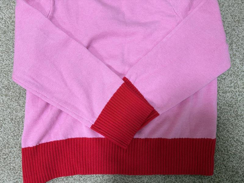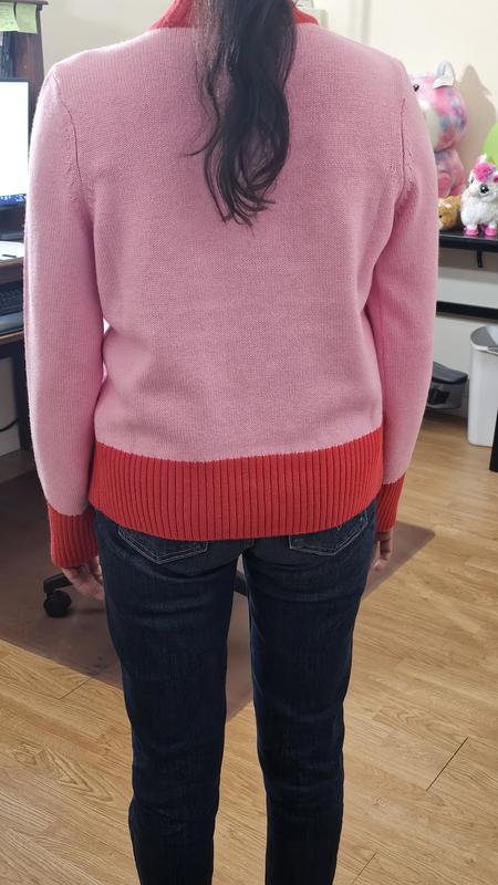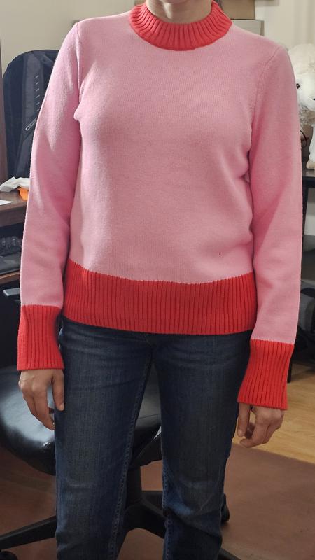 I love this sweater! The lollipop colorblock design is bright, fun, and perfect for adding a little color to my wardrobe. The fabric is soft and comfortable, and the XSS fits just right — fitted but not tight. It’s a great weight for fall or layering in the winter. Overall, it’s a cute, easygoing sweater that feels good to wear and always gets compliments.