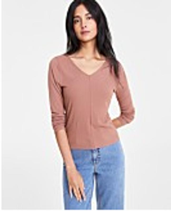 Women's Long-Sleeve Rib Double V-Neck Top, Created for Macy's