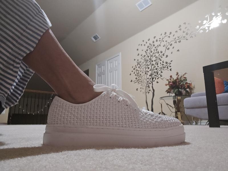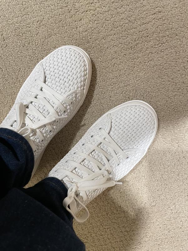 These are the cutest white sneakers ever! Classic white with a funky twist of texture! The thick soul is super comfy and gives a nice lift without being too bulky or heavy! Love these!!!