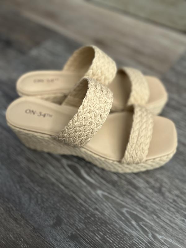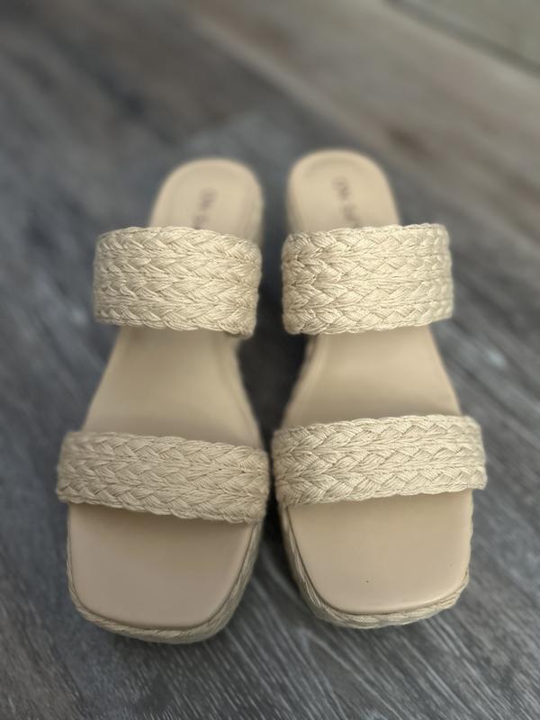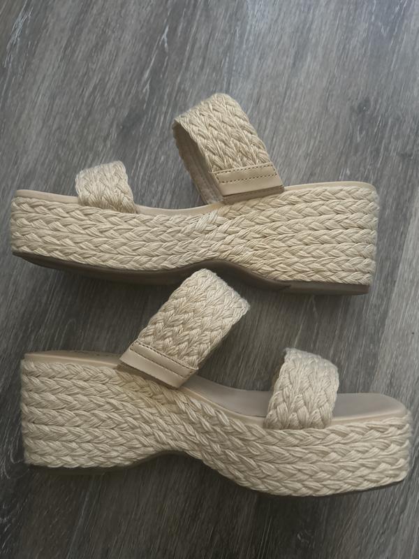 Really cute neutral color sandal that goes with all the pretty summer dresses. Would not suggest walking long periods in them. For me they were not the most comfortable. The wedge and height were fine but something about the structure of the shoe left parts of my feet’s aching.