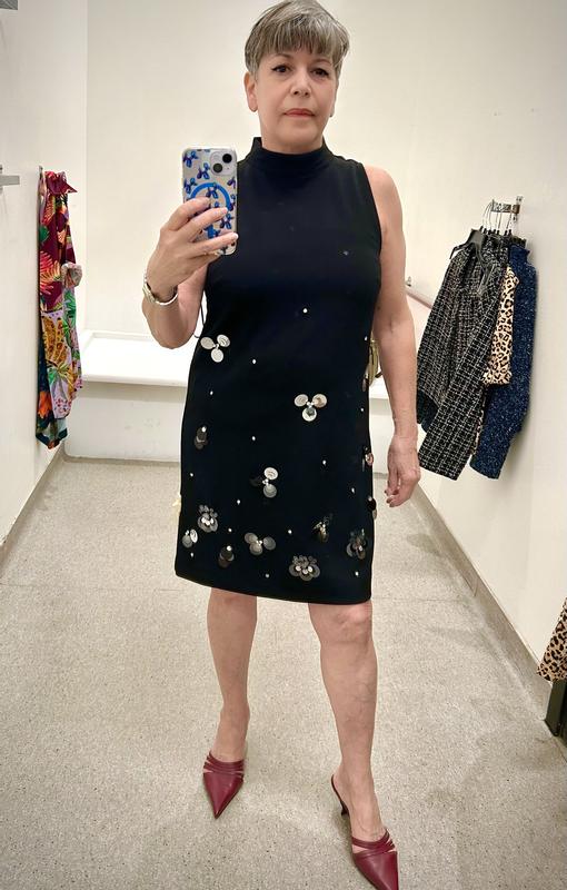Bought for Christmas. It’s really cute on, just shorter than I expected. I’m 5’4” and 125. The dress hits about 3-4” above my knees. I decided to keep the dress and wear tights an go go boots. It’s a shift style and I love the mock turtle neck. I can’t wait to wear at Christmas.