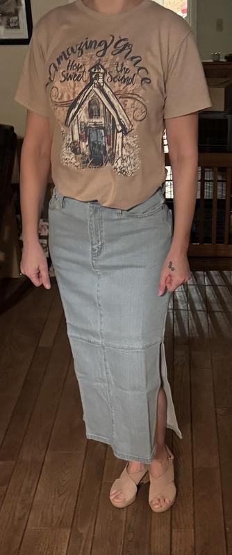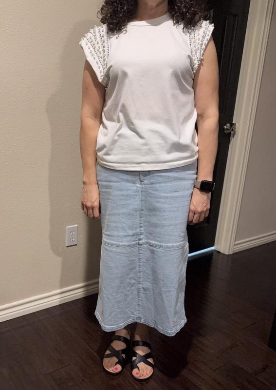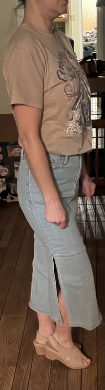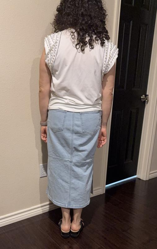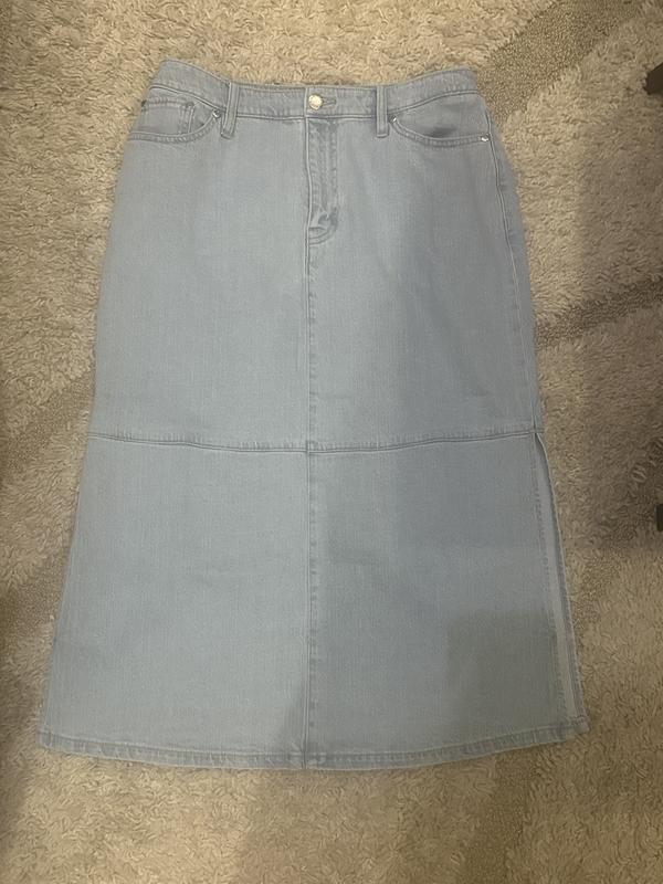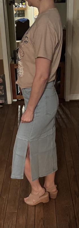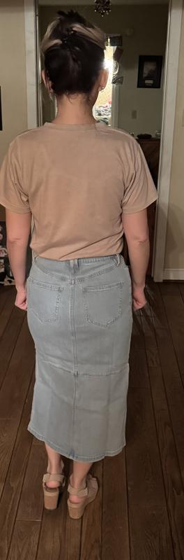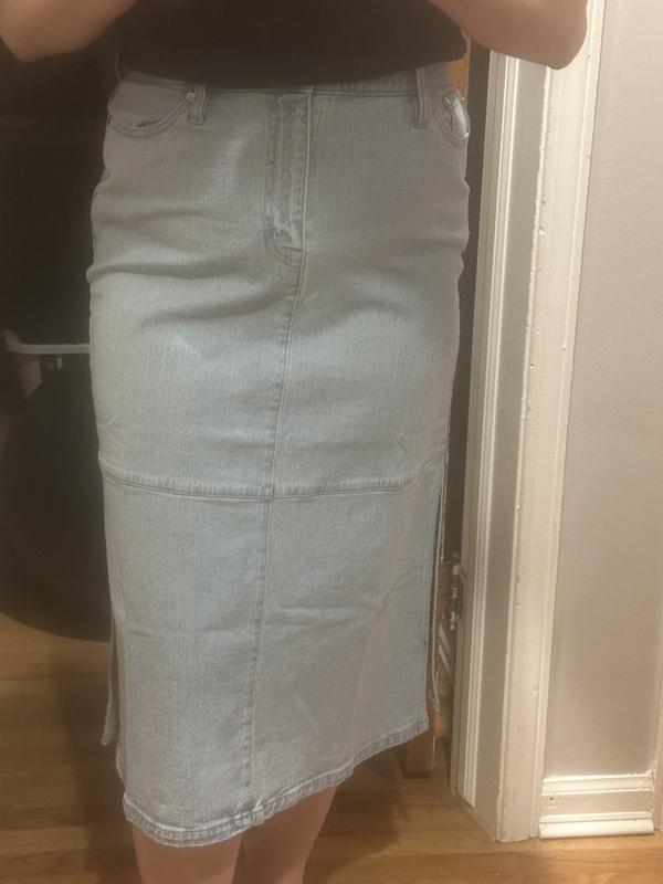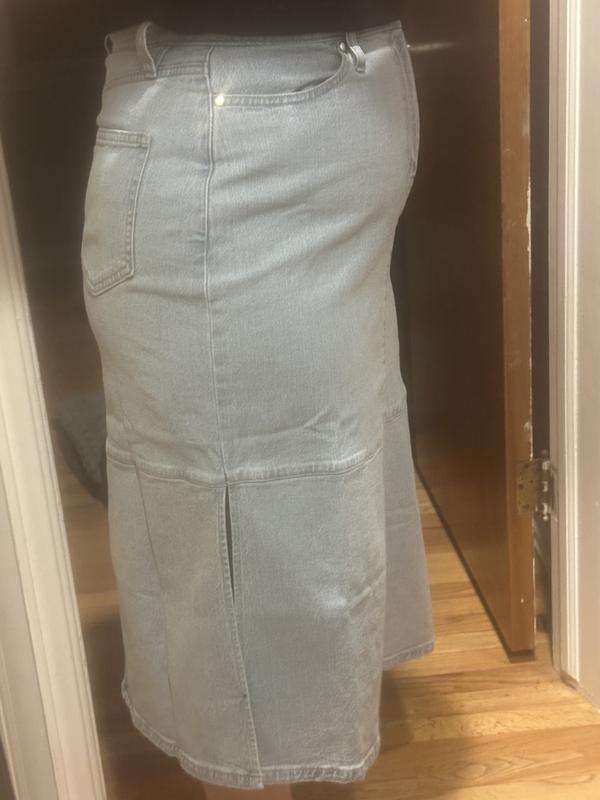 Debating whether a denim midi skirt will work for you? Yes, our version will, thanks to double side slits and seamed panels. ABOUT THE BRAND: Our brand was designed for and with women like you. Made for your body, your style, and your truth. As your wardrobe's best friend, these mix-and-match pieces work with everything in your closet.