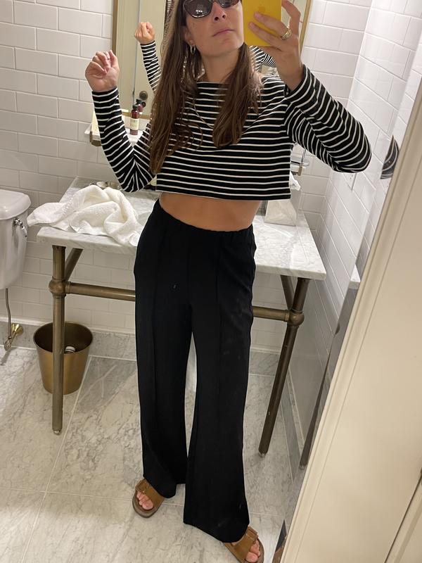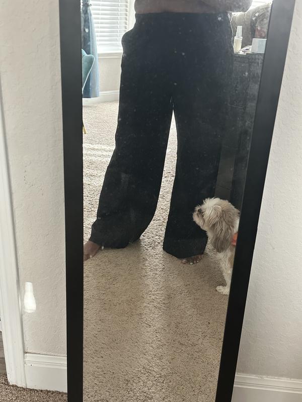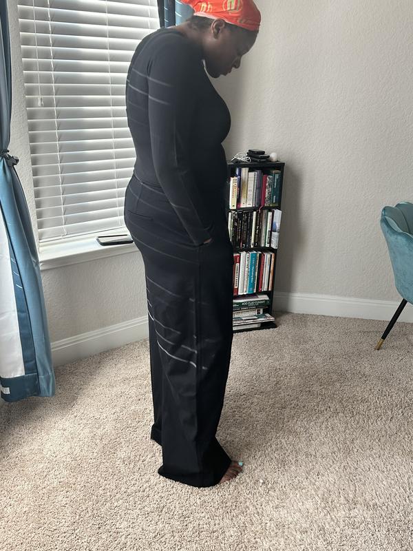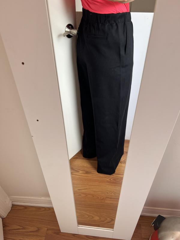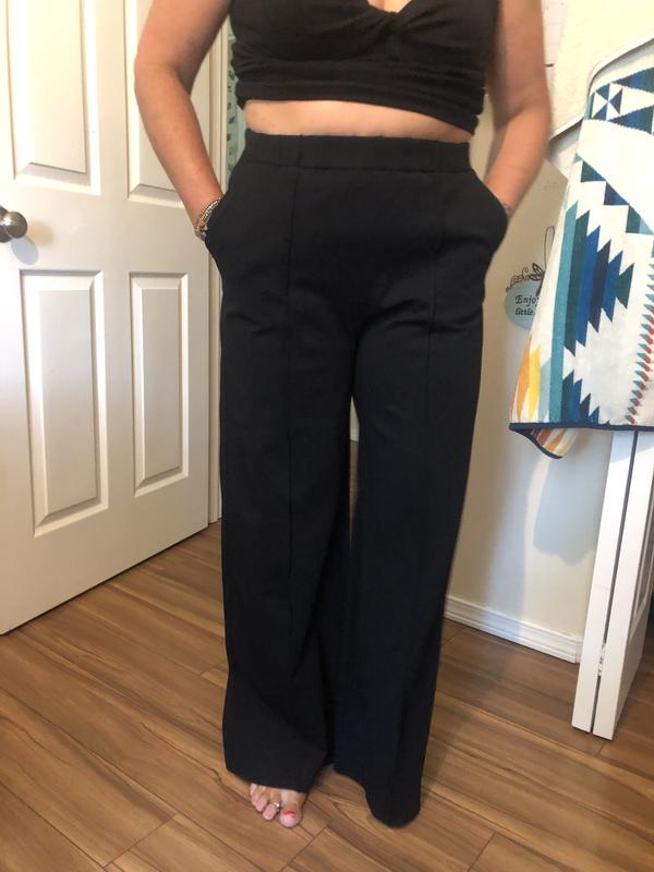 These pants are awesome for my 5’-8” frame. High waist and wide leg are at the perfect proportions. I can wear a 1.5” heel with these and they slightly kiss the floor.