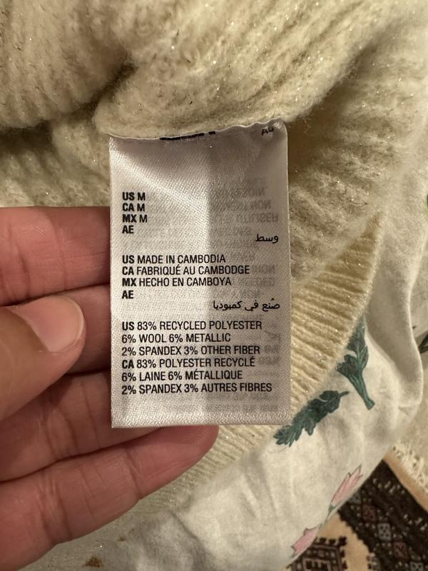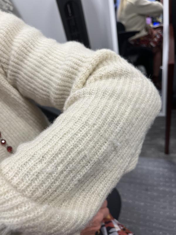 Love this sweater. I bought the pink color. Fits well, very soft, just enough sparkle. Time will tell if it begins to pill.