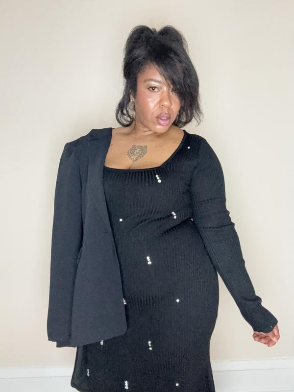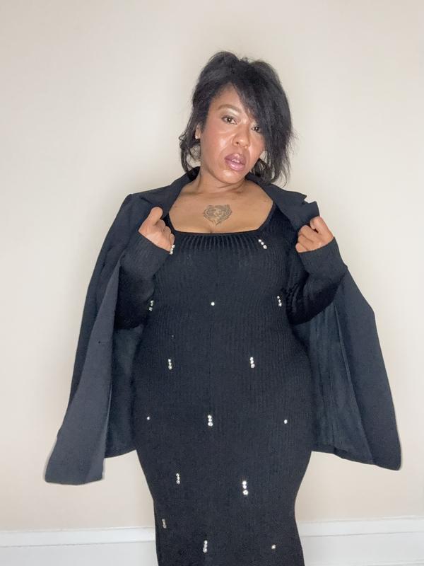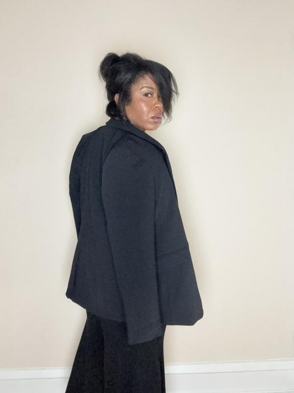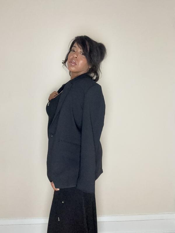 This black blazer drapes nicely on my body but will have it tailored for a better fit.