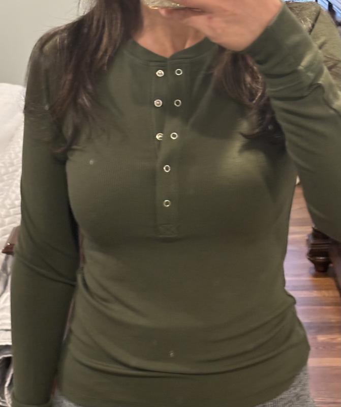 Women's Ribbed Long-Sleeve Henley Top, Created for Macy's