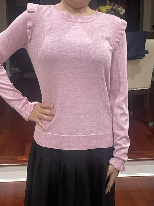 I received this sweater ruffle crew in the pink lilac and it’s beautiful. It’s more of a pink color than lilac but I love it. It’s for my granddaughter and she loves it and it’s a great fit. It’s very soft. I would definitely recommend this sweater to my friends and family.
