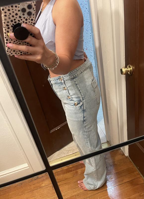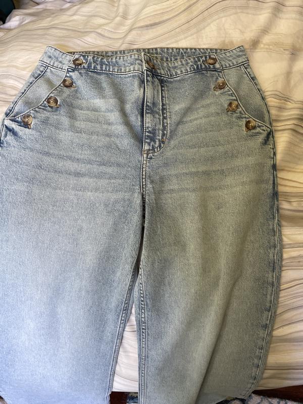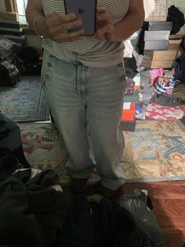 The two buttons on each side at the waist makes the waist tight. The fit is well but the waist is smaller. I will wear them but I’m sure they will not be as comfortable as my other loose leg jeans.