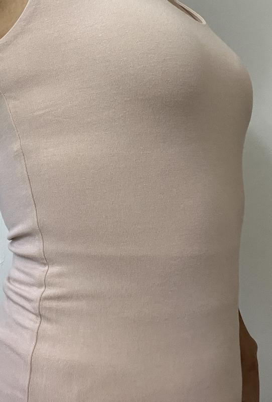 The fabric was thick and tight for a sleeveless tank. I was hoping to use this as a layering piece in summer but decided to return since it was too heavyweight to be used for that. If you wanted to wear it on its own it would be fine