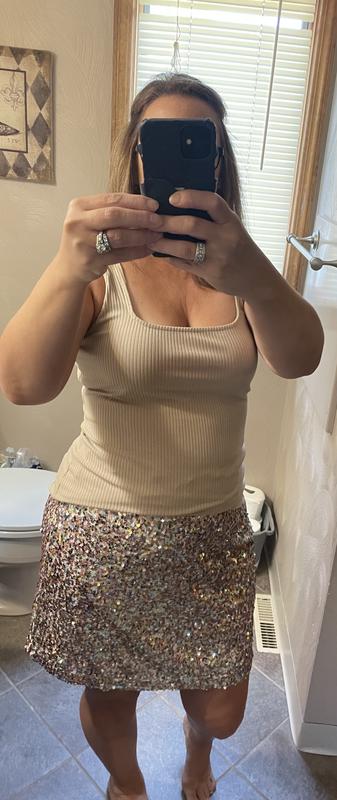 Cute skirt but snug fitting, and lost sequins when I tried it on. Needed to upsize, not worth the investment, so I sent back.