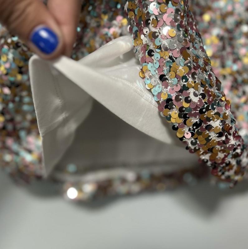 This skirt is absolutely adorable. My 14 year old daughter wore it to Taylor’s Eras tour with a little white crop and sneakers. The material is comfy and durable. She danced the night away and none of the sequins fell off or bunched together. The sequins are beautifully colored. She didn’t complain once about the sequins scratching her mid drift as usually that’s the problem when you have sequined clothing.