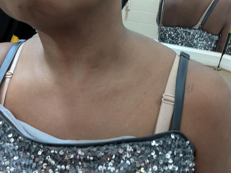 I purchased the white top instead of the silver. I tried on both in the store and the white top had more give than the silver so it fit and felt better.