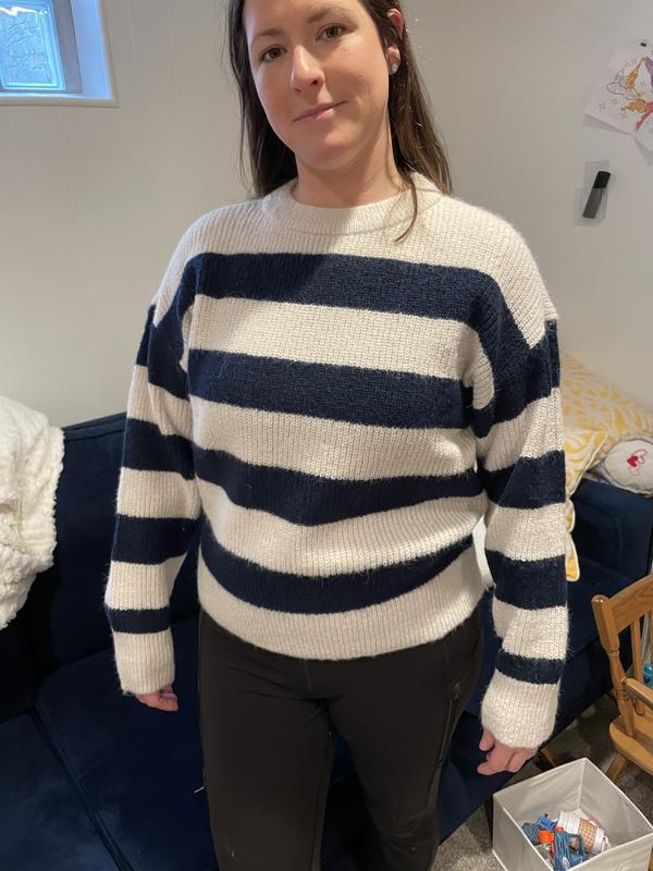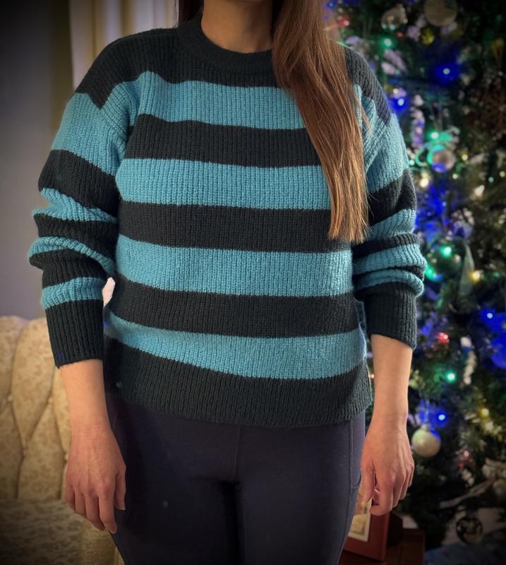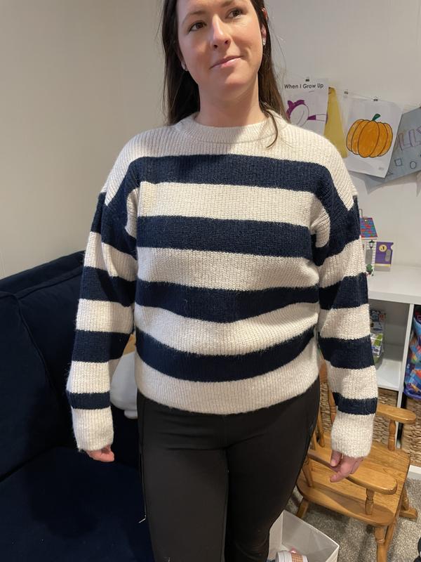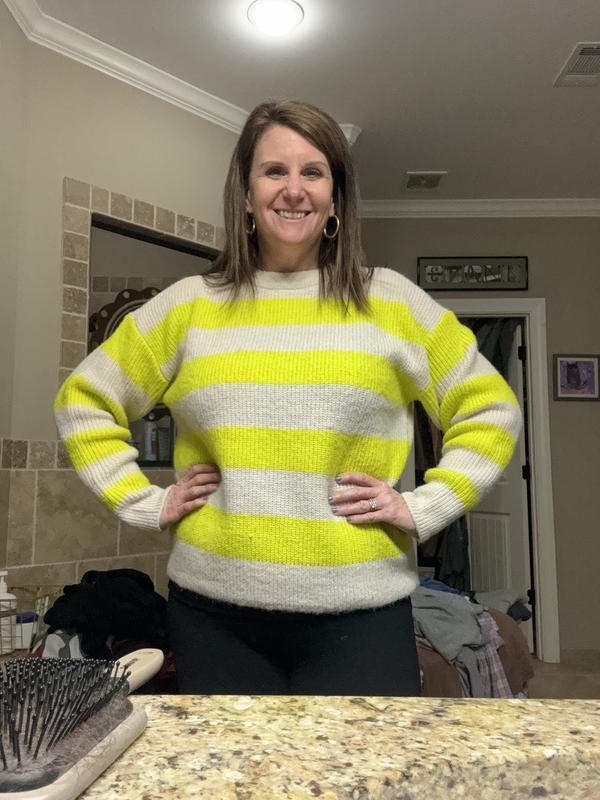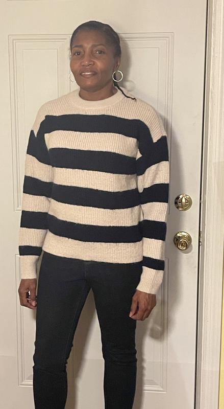 This sweater was very itchy. Neckline unflattering, sleeves too long for the length of the sweater. If you are looking for that look then by all means get it but if you want a well fitting classic sweater this is not it ! And did I say it’s itchy! lol