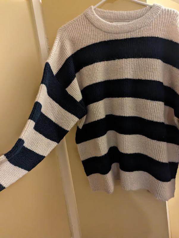 Haven't worn yet as it is hot, but I like the cream and navy stripe