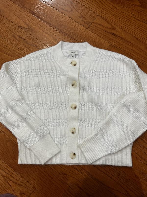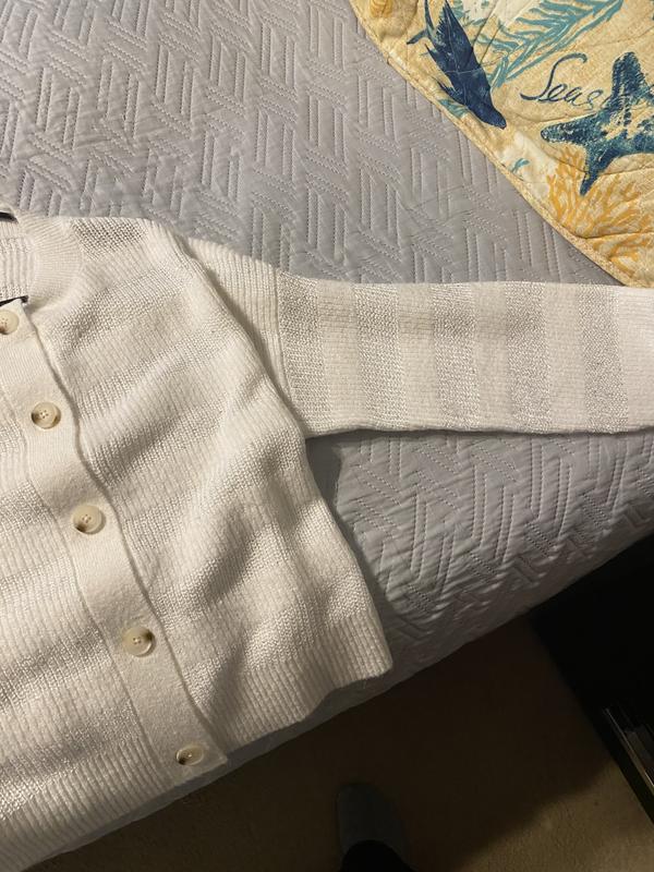 Really nice cardigan. Extremely comfortable. True to size. I love on 34th.