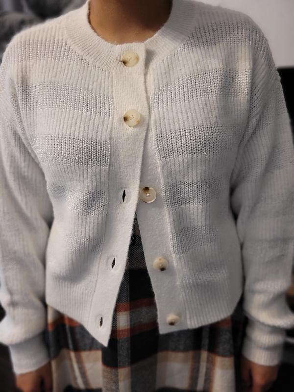This Cardigan felt rich, but the buttons should have been dressier. Rhinestones would have made it pop.
