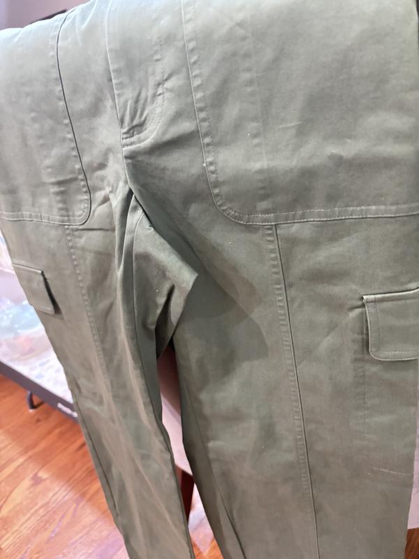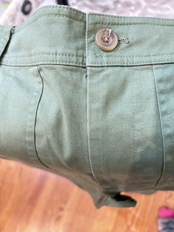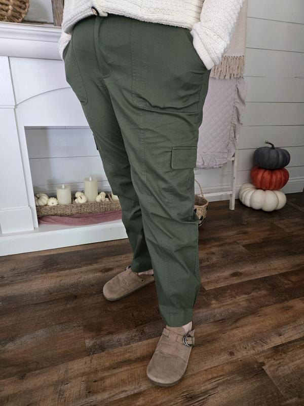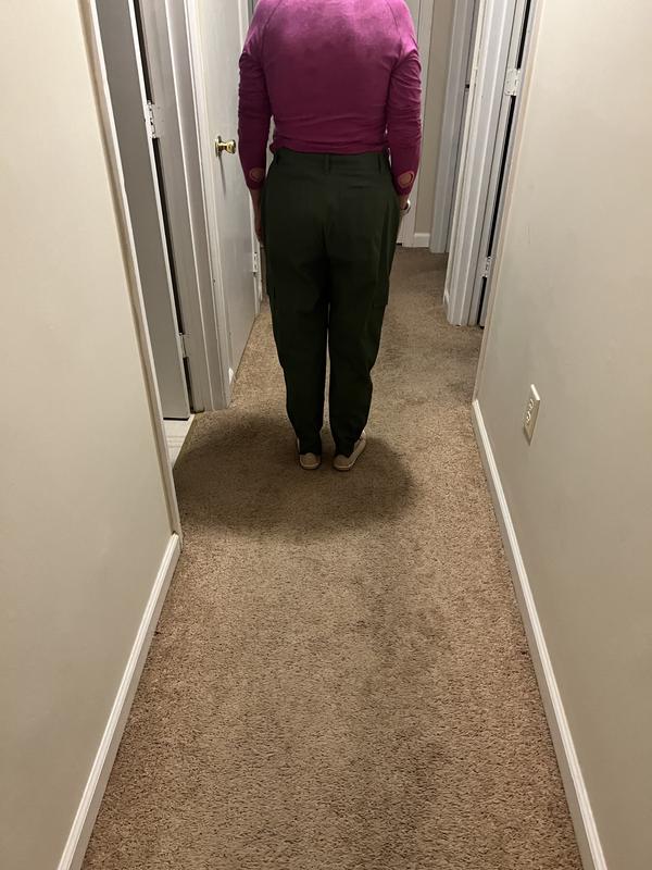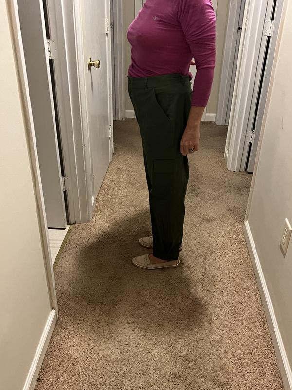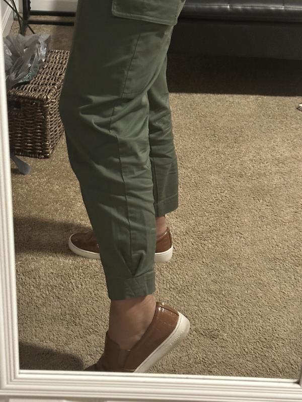 These pants hit all of my check list of favorites except the wrinkle factor. Love: tapered ankle length, true to size, patch like front pockets, front leg seam, side pockets for phone, no back pocket flap to curl up. Not love: pretty wrinkley!