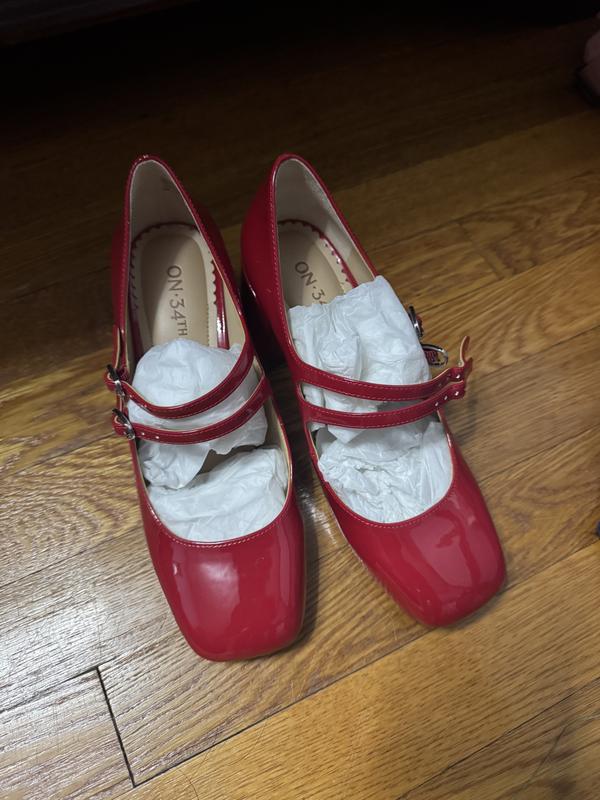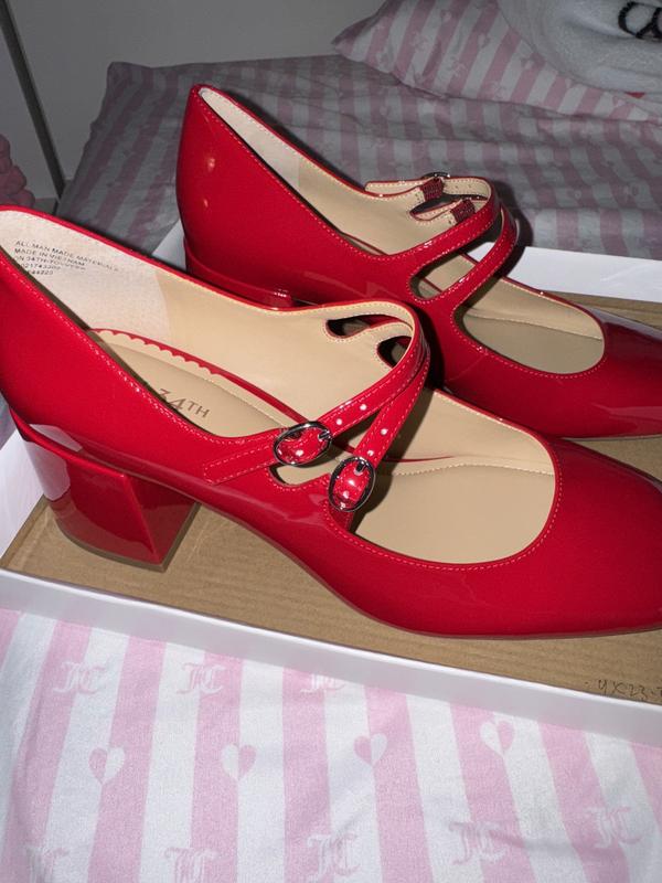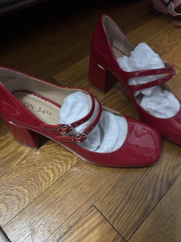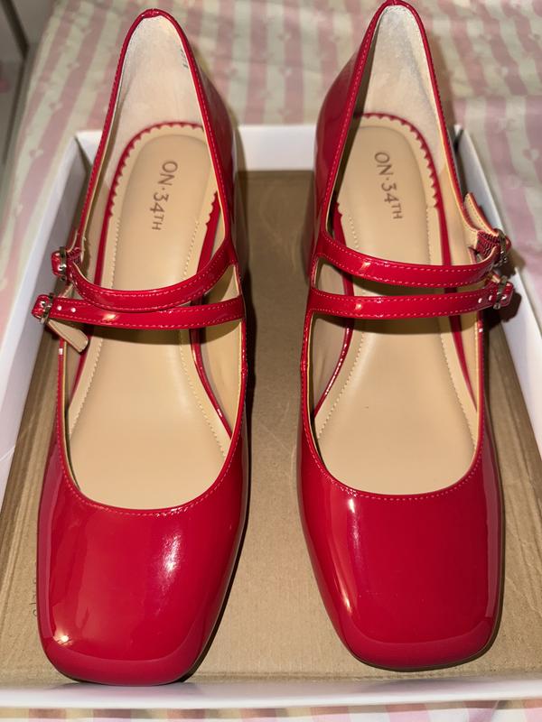I love these so much! They are a beautiful shiny red and I can’t wait to wear them for the holidays. The heel is a perfect length and when I tried them on they are so comfortable . I think it’ll match perfectly for so many outfits