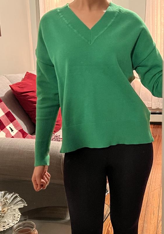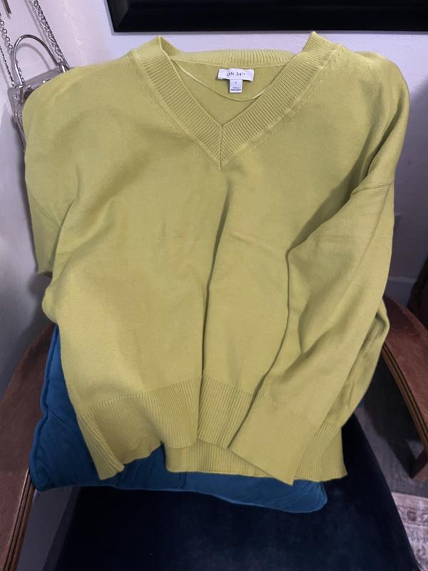 This On 34th V-neck sweater features a relaxed fit, and is finished with ribbed accents. ABOUT THE BRAND: Our brand was designed for, and with women like you. Made for your body, your style, and your truth. As your wardrobe's best friend, these mix-and-match pieces work with everything in your closet.