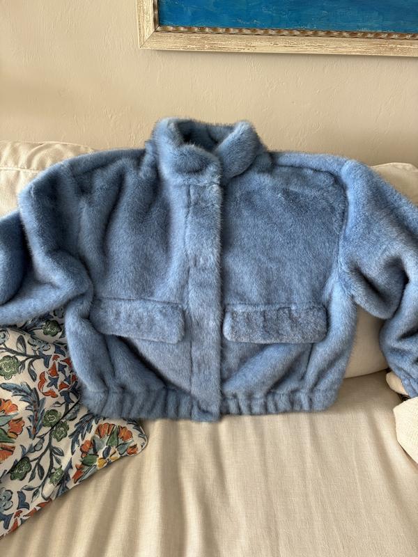 This is an absolutely beautiful high quality faux fur jacket! It looks better in person than online. The inside is a suede type lining. The fur is not pure white it has a little bit of tannish color mixed in which in my opinion makes it look nicer, more like real fur and expensive. So soft and luxurious and fits perfectly. I’m 4’11” 97 pounds and I ordered the XXS. Just a note it does have snaps. Large silver colored snaps but they are hidden when coat is closed. You will see the 2 snaps at the top of the jacket where your neck would be if you don’t snap those closed but I feel doesn’t take away from its beauty. This review is one of very few I’ve done and did so because I am so impressed with this garment.