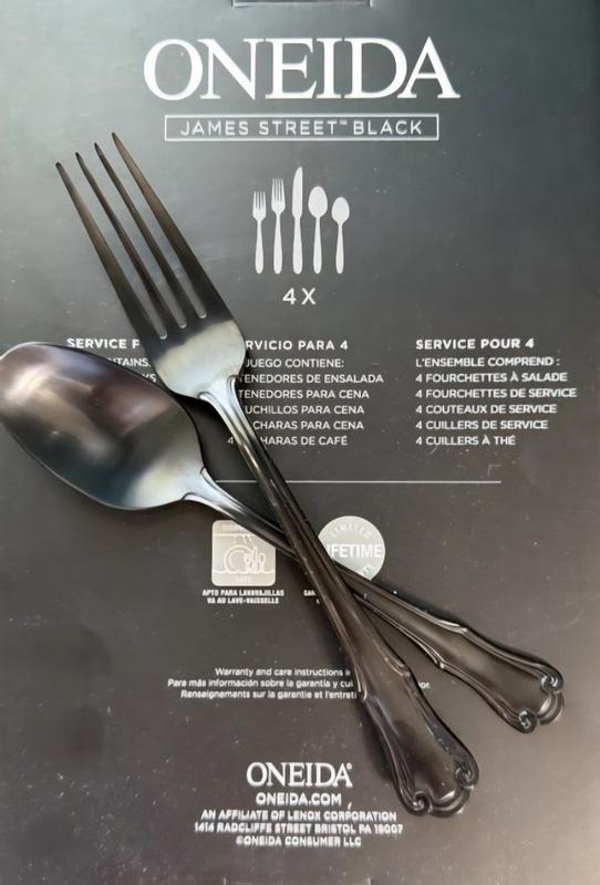 I'm loving my Oneida James Street Satin Black 20 Piece Flatware Set! The satin finish gives it a sophisticated touch, and the modern black design fits perfectly with my home decor. The 20-piece set is generous and includes everything I need for dinner parties or everyday meals. The quality of the flatware is great, and I'm impressed with the Oneida brand. The set looks and feels luxurious, but at a reasonable price point. *What I love most:* - *Modern design*: The sleek black finish is perfect for any table setting. - *Complete set*: 20 pieces include everything I need for hosting and everyday use. - *Quality*: The flatware feels sturdy and well-made. Overall, I'd highly recommend this flatware set to anyone looking for a stylish and functional addition to their kitchen.