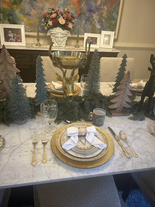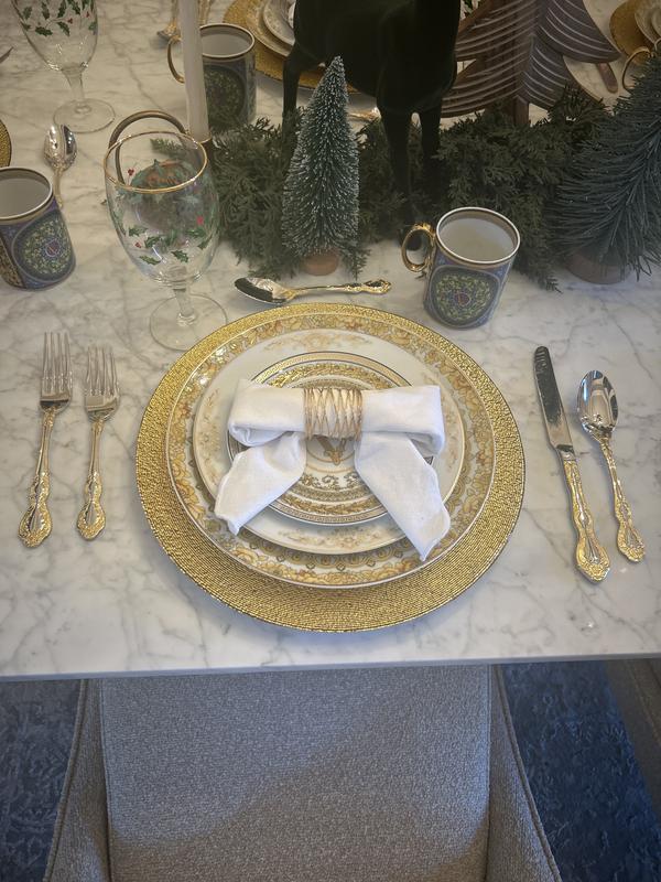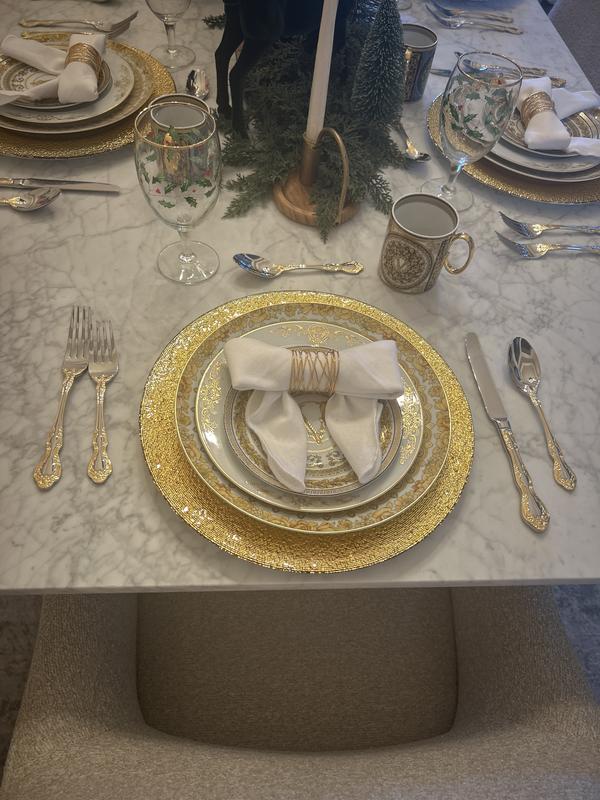 The set arrived on time. It is more beautiful in person then on line. I adore the quality of Oneida products. They have never failed me. WAY TO GO!!!