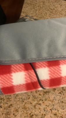 Nice thick material, great picnic blanket for various places (grass, park, sporting events, etc). Takes practice in re-folding + rolling up, but after awhile you get the hang of it. Easy to carry around.