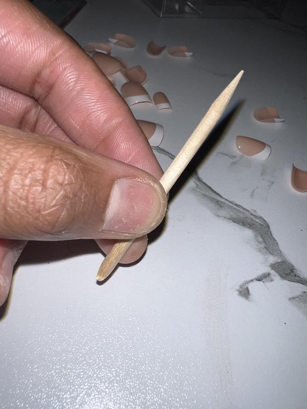 I'm really enjoying these nails; they tend to last me around two weeks. To extend their lifespan, I make sure to wear gloves while washing dishes, cleaning, or doing anything else that involves submerging my hands in water. It took me a couple of tries to get the hang of applying them correctly, but by the third attempt, I nailed it. The adhesive works great, especially when I remember to apply it both to my nail bed and the artificial nail. I'd rate them 5 stars, but I've noticed the finish tends to scratch and lose its shine by the second week. However, a quick layer of nail polish revives them instantly. For this reason, I always keep a matching nail polish on hand.