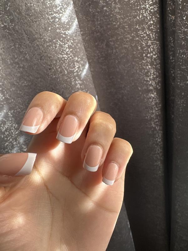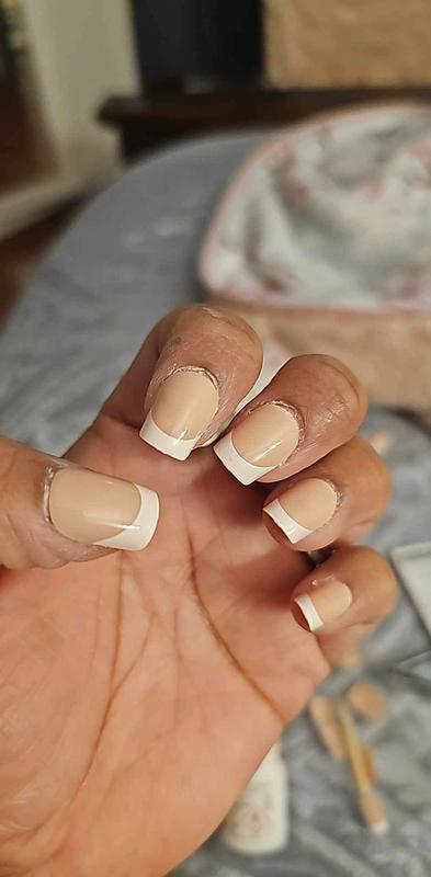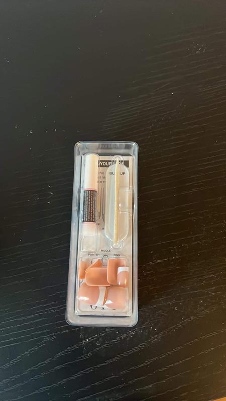 If you don't have time to get your nails done and you need a beautiful set of nails to attend a party or appointment, this is a quick choice that saves time and doesn't cost too much money. Comes with accompanying tools to help you easily apply fake nails to your hands. Very convenient. The downside is that it will easily fall apart if there is a strong impact. The model I chose is a French nail tip design, with a skin-colored base color combined with a white border. Although it is an old style, it is still not outdated. Simple and elegant. Thank you for letting me experience the product
