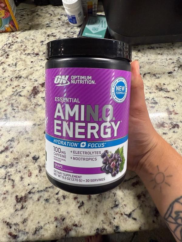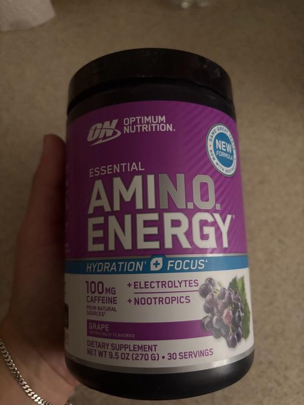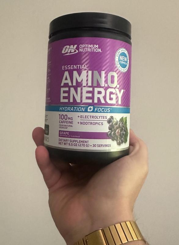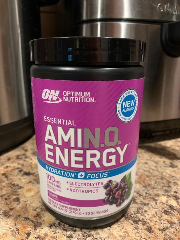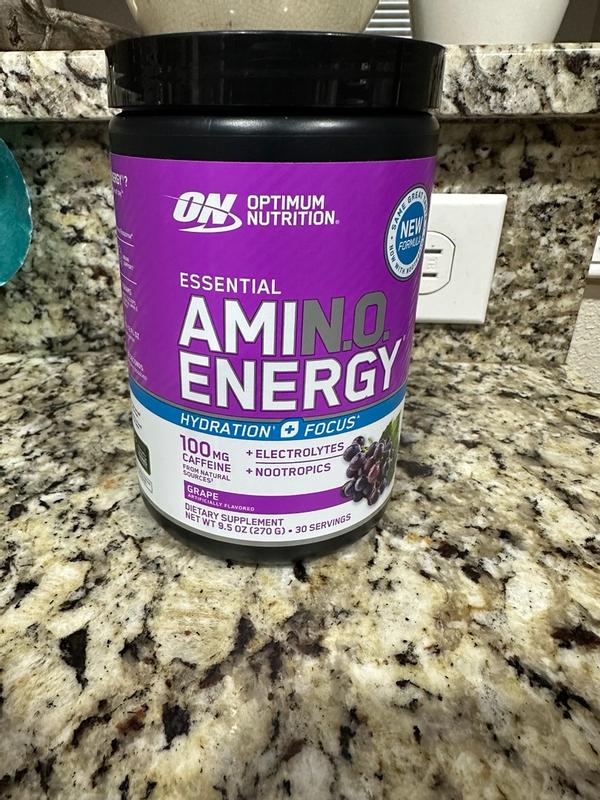 Optimum Nutritions Essential Amin.o Energy is a great product. I’ve been taking it for about 2 weeks now and I can tell the difference. First off, most energy powders are very bland but this one which is grap, actually taste like grape. Just 2 scoops and about 12 ounces of water is all you need every morning to have more energy and focus through out the day. My job requires me to focus on multiple tasks daily and I have been able to do that better since taking the Amin.o Energy. It’s a great product and I will continue to take it for a long time.