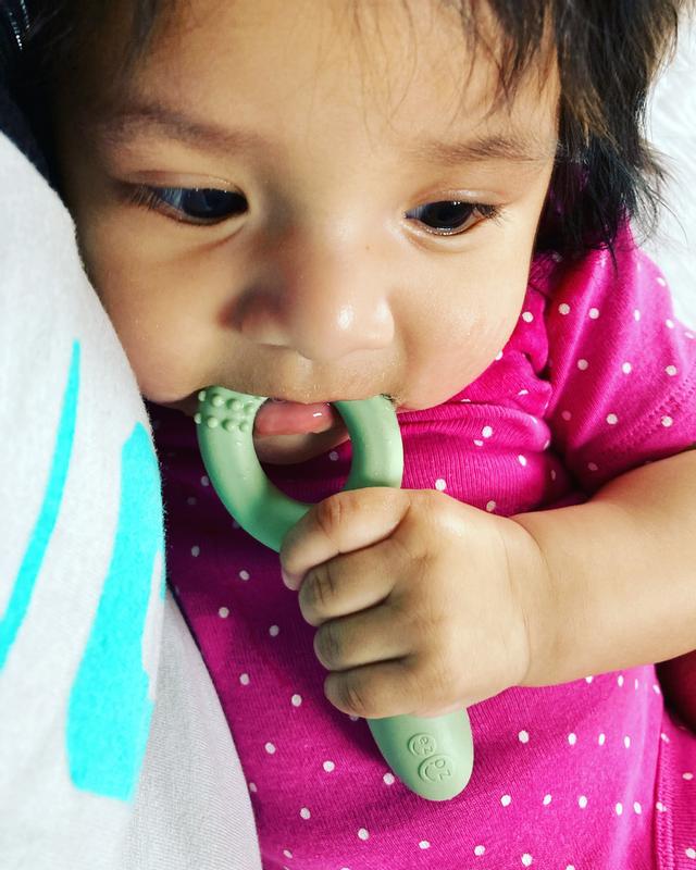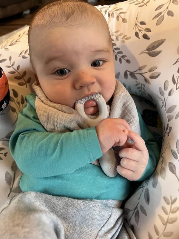 My 3 month old was constantly chewing on her hands but couldn’t grip things that well yet, and this was great because she was able to hold onto it and bring it to her mouth to chew on. Ordering another set now!