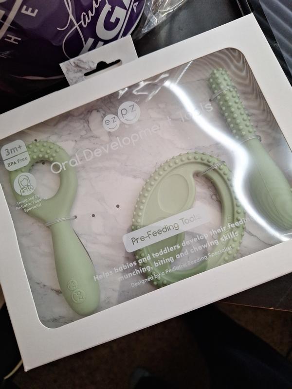 This was our first intro to our baby. . baby found it “interesting”. Grabbed onto the bump stick and wouldn’t let it go. She loved the “bumpy rattler” as well. You can use as teethed standalone + add food to it. Baby loves it